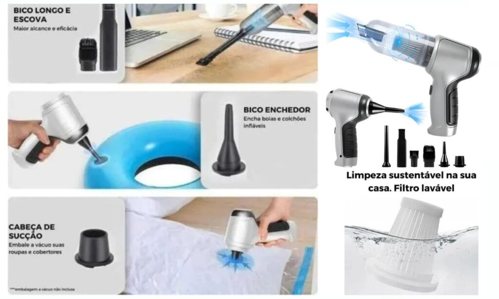 Use em qualquer lugar: carro, mesa, cama, sofá, teclado… ele vai onde o aspirador normal não chega.